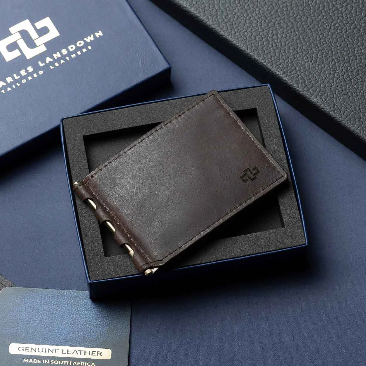 The Benjamin Brass Moneyclip Wallet combines slim elegance and practicality with six card slots and a central brass money clip for secure note storage.