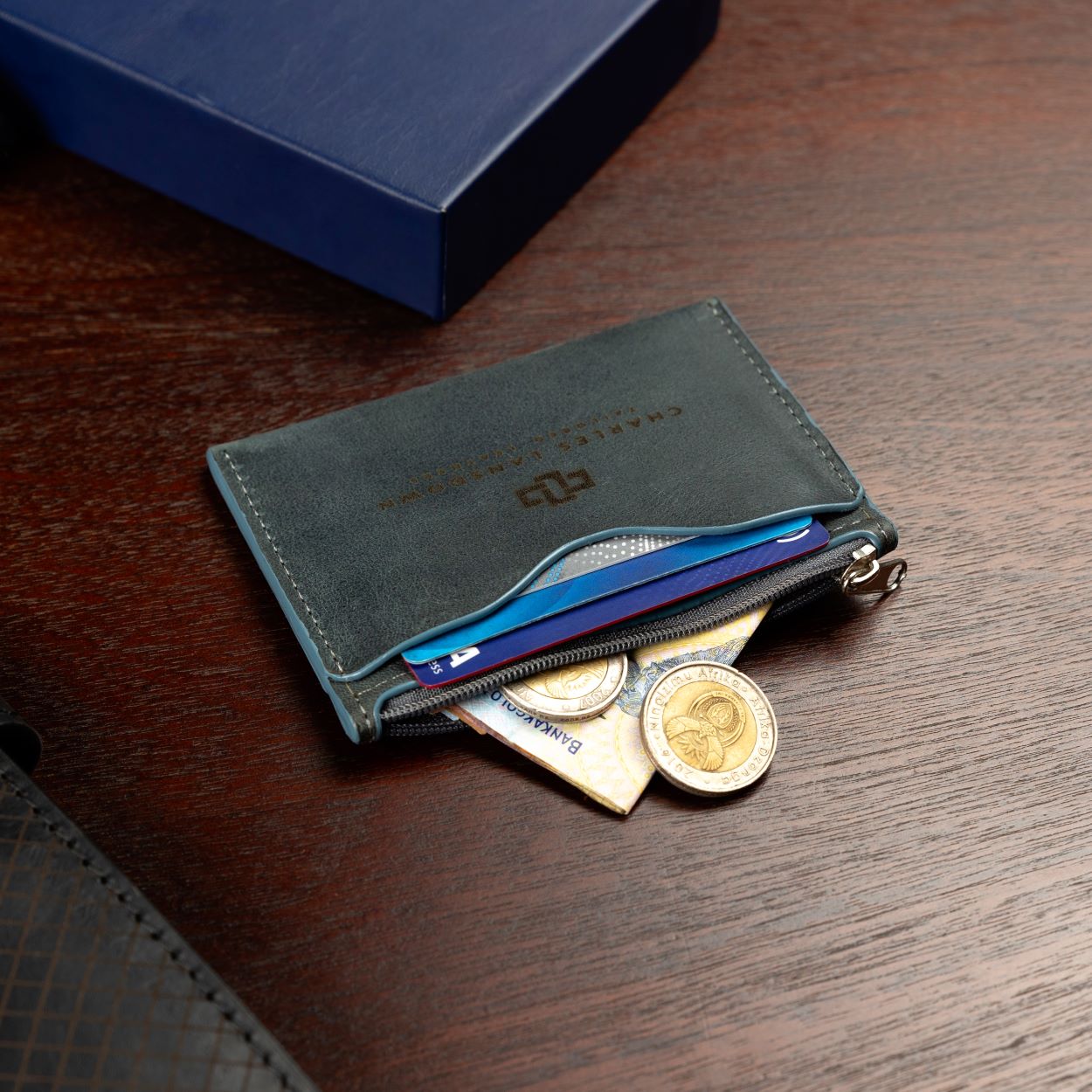 The Dakota Zipped Cardholder blends elegance and practicality, crafted from genuine leather with curved card slots and a secure zipped top for extra storage.