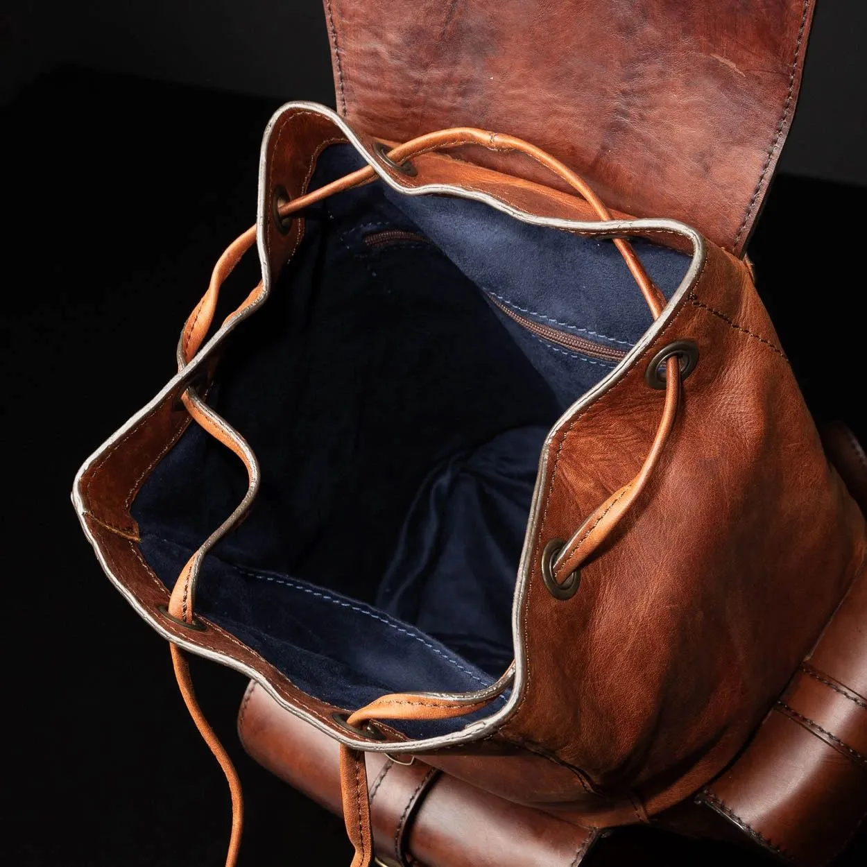 The Explorer Large Backpack is a rugged leather companion built for adventure and daily life. With a spacious interior, durable pockets, and a secure drawstring top, it balances classic style with practical storage for city streets and weekends away.